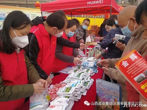 在运城盐业宣传台前,现场展示的公司所经销的晋盐种类,吸引了许多群众驻足询问。针对每个单品的特点和功效,营销科负责人不厌其烦地一一为群众科普讲解,提醒广大群众从正规合法渠道购买放心食盐,同时倡导“少吃盐,吃好盐,就选晋盐”的生活理念,加深科学用盐的认识。