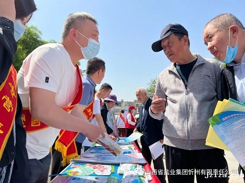 在体育馆广场,分公司领导和各相关单位领导一同走上街头与宣传人员共同散发宣传资料,耐心地为老百姓们讲解科学补碘的好处,向广大百姓普及食用加碘盐是最简单、安全、有效、经济的补碘措施,为广大群众普及“吃好盐、吃晋盐”的健康新理念。