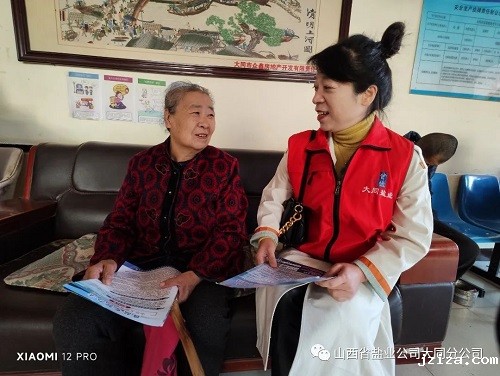 安康鹿苑养老院是一家民办公助的中型护理型养老院,受养老人大多数为五保户,还有一名从月份就来到养老院的10岁脑瘫儿童和在这里居住十余年的33岁大脑发育不全的成人,大同盐业的工作人员给大家讲到食盐中添加的“碘”对大脑发育的关键作用,包括活动现场的各部门人员听到我们现场讲解后也深感食用安全健康碘盐对身体的重要性,武定街道白泊洼社区领导当即邀请我们一定要进社区给广大居民讲讲补碘的重要性。