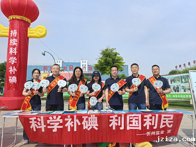在体育馆广场,忻州分公司领导和卫计委领导一同走上街头与宣传人员共同散发宣传资料,耐心的为老百姓们讲解科学补碘的好处,向广大百姓普及食用加碘盐是最简单、安全、有效、经济的补碘措施,为广大群众普及“吃好盐、吃晋盐”的健康新理念。
