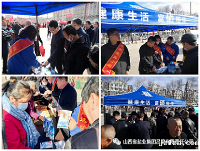 各地活动现场设立咨询台和商品展示台,公司宣传人员以食盐专营办法及食盐安全宣传为重点,现场为市民答疑解惑,通过安全健康用盐宣传、产品介绍、辨别真假盐、发放宣传资料等多种方式,向消费者宣传普及安全用盐常识,介绍不合格盐品对人体的危害及放心食盐的购买渠道,积极宣传盐业法律法规,积极向消费者积极科普“晋盐”牌系列产品天然、绿色、无污染等特点及食用部分晋盐产品的功效,在保护消费者权益的同时提升消费者对晋盐品牌的认知度。