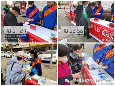 为加强食盐消费教育引导,帮助广大消费者树立食盐消费维权意识,提高自我防范能力,在2023年“3.15”消费者权益日到来之际,吕梁盐业公司积极配合市场监督管理局,在离石、孝义、临县、柳林四个地点同时开展“提振消费信心”为主题的食盐宣传活动。