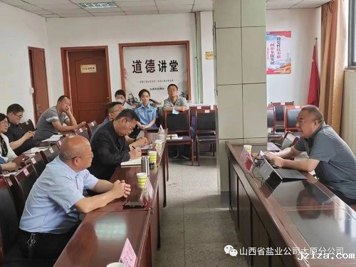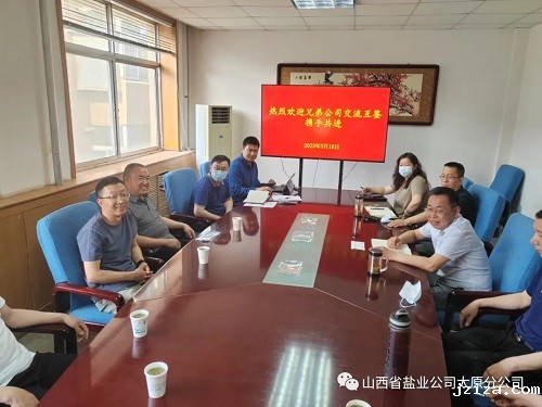 5月18日,忻州分公司经理张丑荣一行5人来太原分公司就依法市场整治、消费者信息建设、晋盐产品营销等方面进行工作交流座谈。